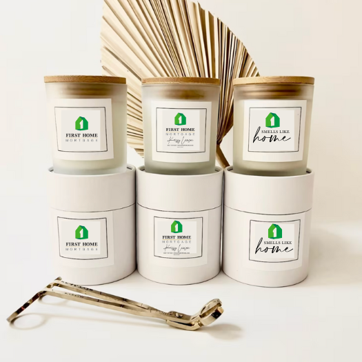 Celebrate new beginnings with our Custom Candle, the perfect housewarming gift! Choose from your first home logo, loan officer branding, or a favorite quote to make it uniquely yours. Available in a variety of delightful fragrances, this candle adds warmth and personality to any space. After placing your order, our marketing team will reach out to fine-tune every detail for a gift that truly shines. Light up memories with a touch of playful charm!