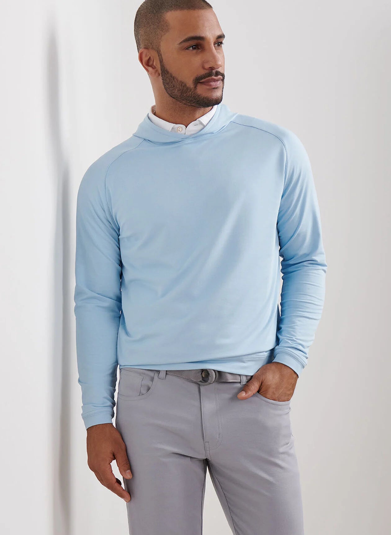 A must-have for everyday performance, the Pine offers four-way stretch, wicking and easy-care benefits in a classic casual style. The signature fabric features a smooth front and micro-waffle back for softness and breathability. Finished with raglan sleeves, clean banded cuffs and a banded hem.